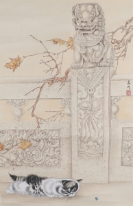 编号:11108 作者:米春茂 名称:石狮猫戏图 规格:44*67cm 售价:¥12000 备注: