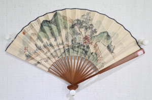 编号:10898 作者:张大千 名称:青绿山水成扇 规格:18*50cm 形式:纸本成扇 售价:¥180000 备注: