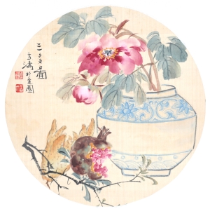 编号:11015 作者:王雪涛 名称:三多图 规格:D:25cm 形式:绢本镜心 售价:¥38000 备注: