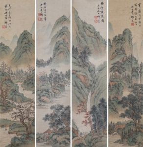 编号:11016 作者:祁井西 名称:山水四屏 规格:10.5*45cm*4 形式:纸本立轴 售价:¥48000 备注: