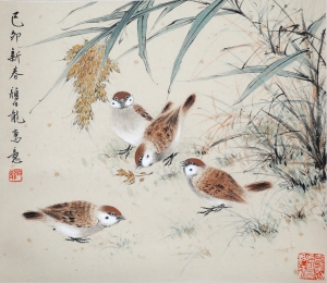 编号:11022 作者:颜伯龙 名称:群雀 规格:24.5*28cm 形式:纸本立轴 售价:¥18000 备注: