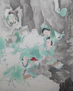 编号:11061 作者:张大千 名称:荷塘仕女 规格:50*62 形式:纸本镜心 售价:¥280000 备注: