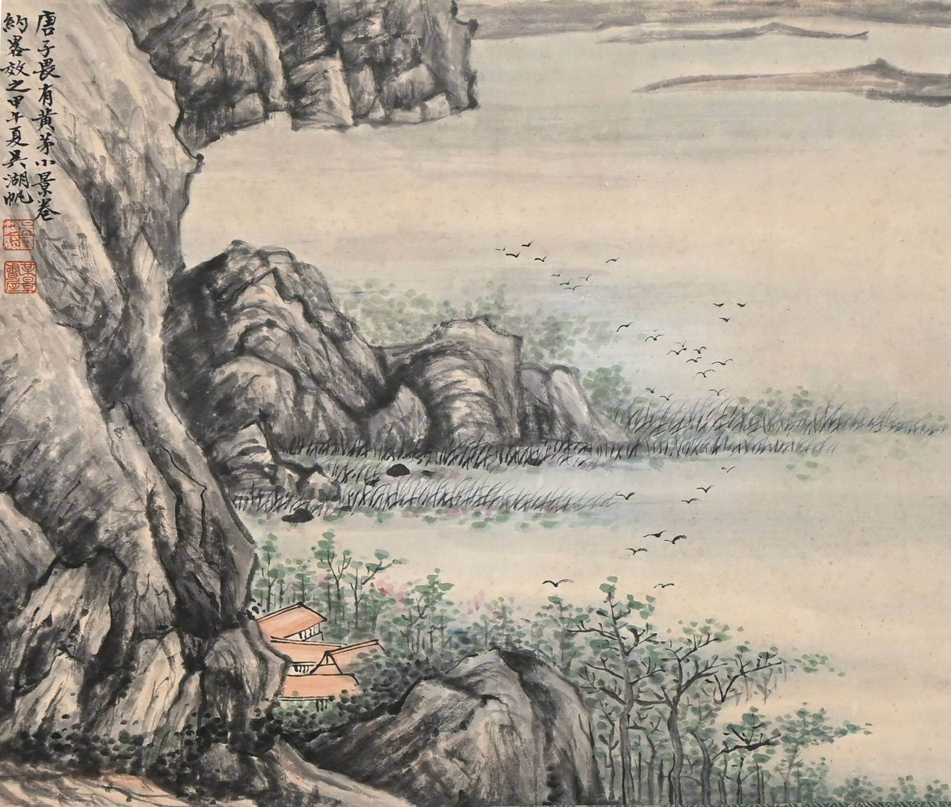 吴湖帆,江苏苏州人,为吴大澄嗣孙(1894年农历七月初二—1968年8月11日)。初名翼燕,字遹骏,后更名万,字东庄,又名倩,别署丑簃,号倩庵,书画署名湖帆。 [1] 三四十年代与吴待秋、吴子深、冯超然并称为“三吴一冯”。建国后任上海中国画院筹备委员、画师,上海大学美术学院副教授,中国美术家协会上海分会副主席、上海市文史馆馆员、上海市文物保管委员会委员。收藏宏富,善鉴别、填词。山水从“四王”、董其昌上溯宋元各家,冲破南北宗壁障,以雅腴灵秀、缜丽清逸的复合画风独树一帜,尤以熔水墨烘染与青绿设色于一炉并多烟云者最具代表性。并工写竹、兰、荷花。二十世纪中国画坛一位重要的画家,他在中国绘画史上的意义其实已远超出他作为一名山水画家的意义。 吴湖帆,著有《联珠集》《梅景画笈》《梅景书屋全集》《吴氏书画集》《吴湖帆山水集锦》及多种《吴湖帆画集》行世。