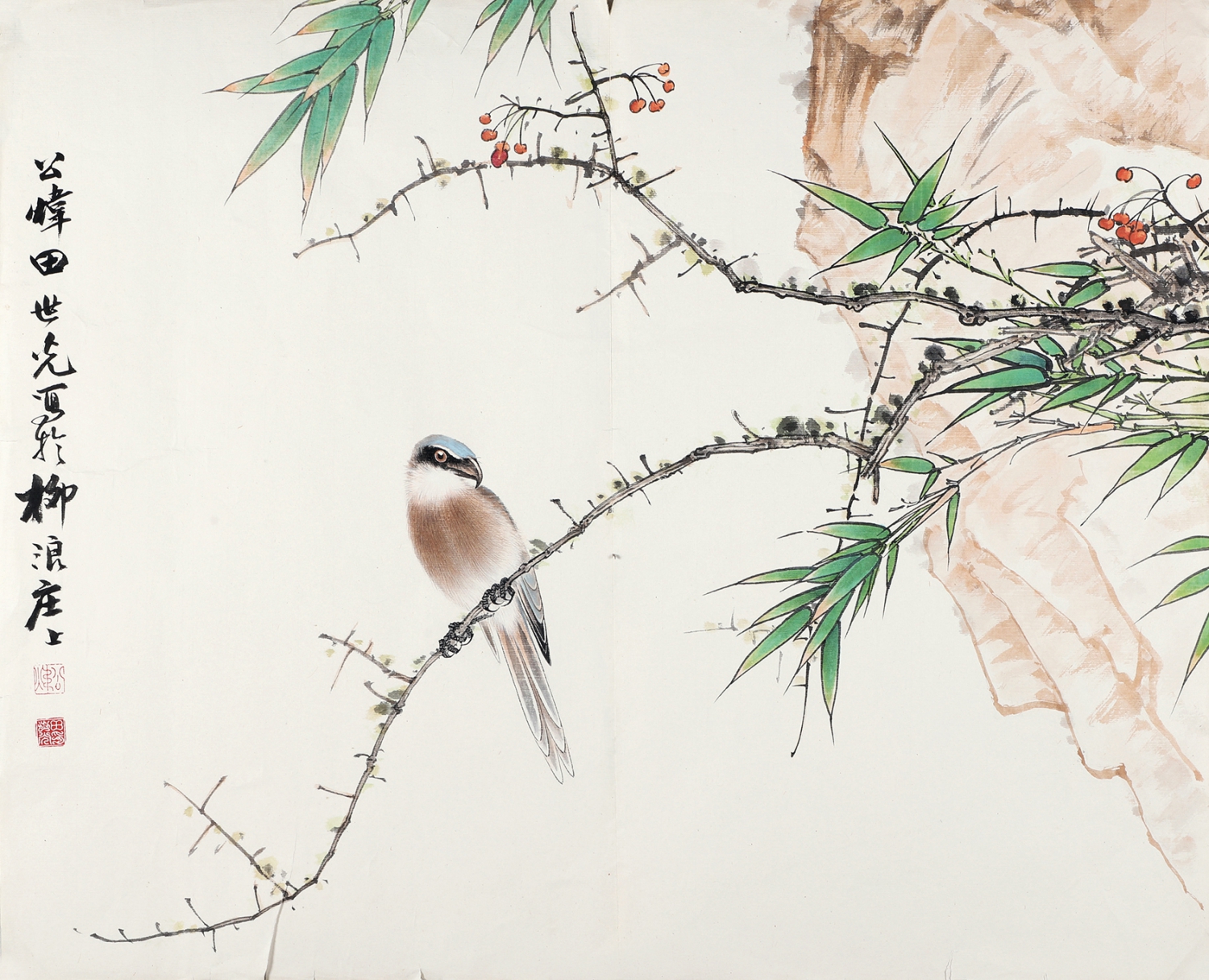7416 田世光 《竹枝天竺小鸟》