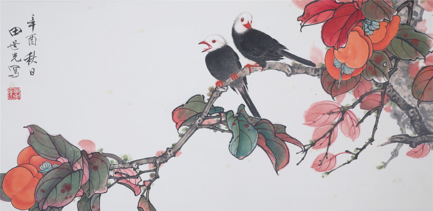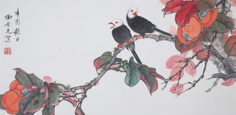 田世光(1916年10月—1999年7月)号公炜,祖籍山东乐陵,世居北京西海淀六郎庄。师承张大千、赵梦朱、吴镜汀、于非闇、齐白石诸先生。早年拜张大千门下,为大风堂弟子之一 。早年求学于京华美术学院,专攻国画花鸟,解放前在北平国立艺专任教,曾任中央美院教授。他长期从事花鸟、山水画创作,继承了宋元派双勾重彩工笔花鸟画的优良传统技法,并赋之予新的时代精神,为我国现代工笔花鸟画名家。田世光先生是中国美术家协会会员,北京工笔重彩画副会长,中国画研究院第一届院务委员。