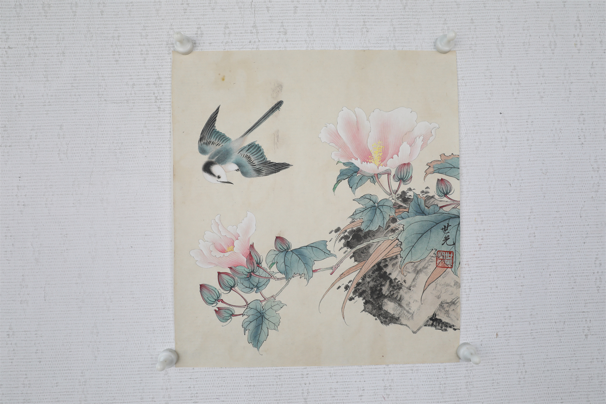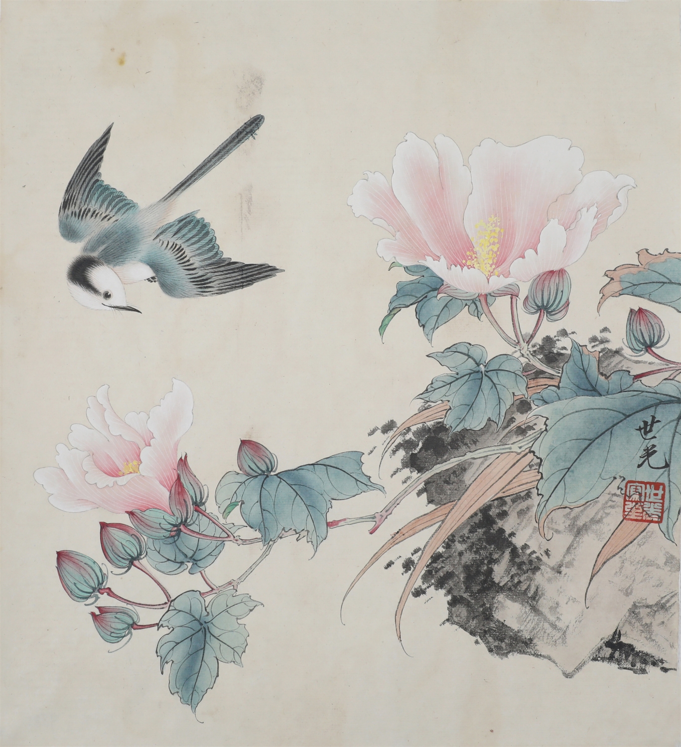 田世光(1916年10月—1999年7月)号公炜,祖籍山东乐陵,世居北京西海淀六郎庄。师承张大千、赵梦朱、吴镜汀、于非闇、齐白石诸先生。早年拜张大千门下,为大风堂弟子之一 。早年求学于京华美术学院,专攻国画花鸟,解放前在北平国立艺专任教,曾任中央美院教授。他长期从事花鸟、山水画创作,继承了宋元派双勾重彩工笔花鸟画的优良传统技法,并赋之予新的时代精神,为我国现代工笔花鸟画名家。田世光先生是中国美术家协会会员,北京工笔重彩画副会长,中国画研究院第一届院务委员。