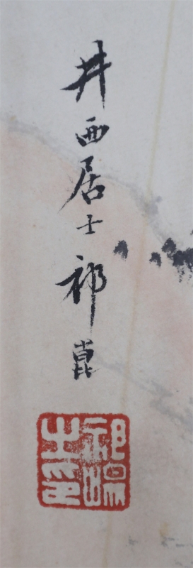 祁井西(又名祁昆1901—1944)字景西,号井西居士斋号曰松崖精舍。北京人。初以籹卖颜色得识京城名家,刻励自学。因受民初追踪宋元之风的影响,专意摹古临古,尚北宗山水,所画理法精严,笔墨精致,枯润合度。在20-40年代的北京有一定影响。工细山水得明人遗意,又精篆刻。性喜犬,室内床上下所蓄犬无思十余头,可谓奇癖,所作山水,规模明人,而近于王翚。作风精细清润,构图全出之正统派民国初年北京画坛以王翚为“神圣不可侵犯”,祁氏亦受影响,在学王诸诸家中堪称翘楚。但用笔略嫌拘谨板实,工稳有余,创意不足。弟子有郭传璋徐鼎正梁树年等。