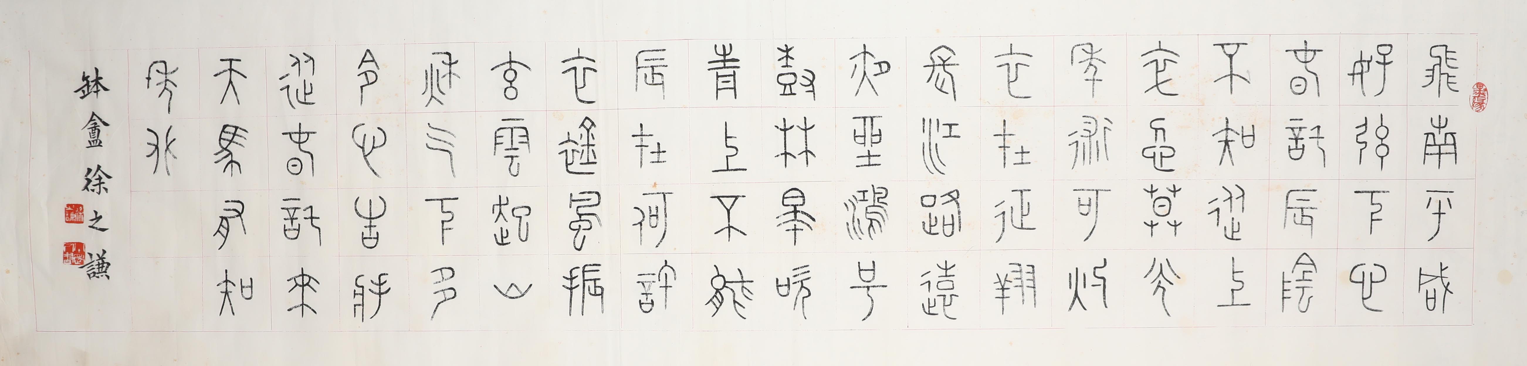 徐之谦(1903年--1985年),字钵厂,号益斋又号居庸山农,昌平区马池口镇葛村人,近代书法大家,篆刻家。徐之谦,祖上世代务农,家境清贫,幼年仅读过三年私塾。1920年经友人介绍,进北京文楷斋刻书处学徒。因其自幼喜爱书法,此项工作恰与志趣相投,工作起来十分勤奋。工作之余,他从临摹《欧阳询九成宫醴泉铭》开始,朝夕用功,书艺