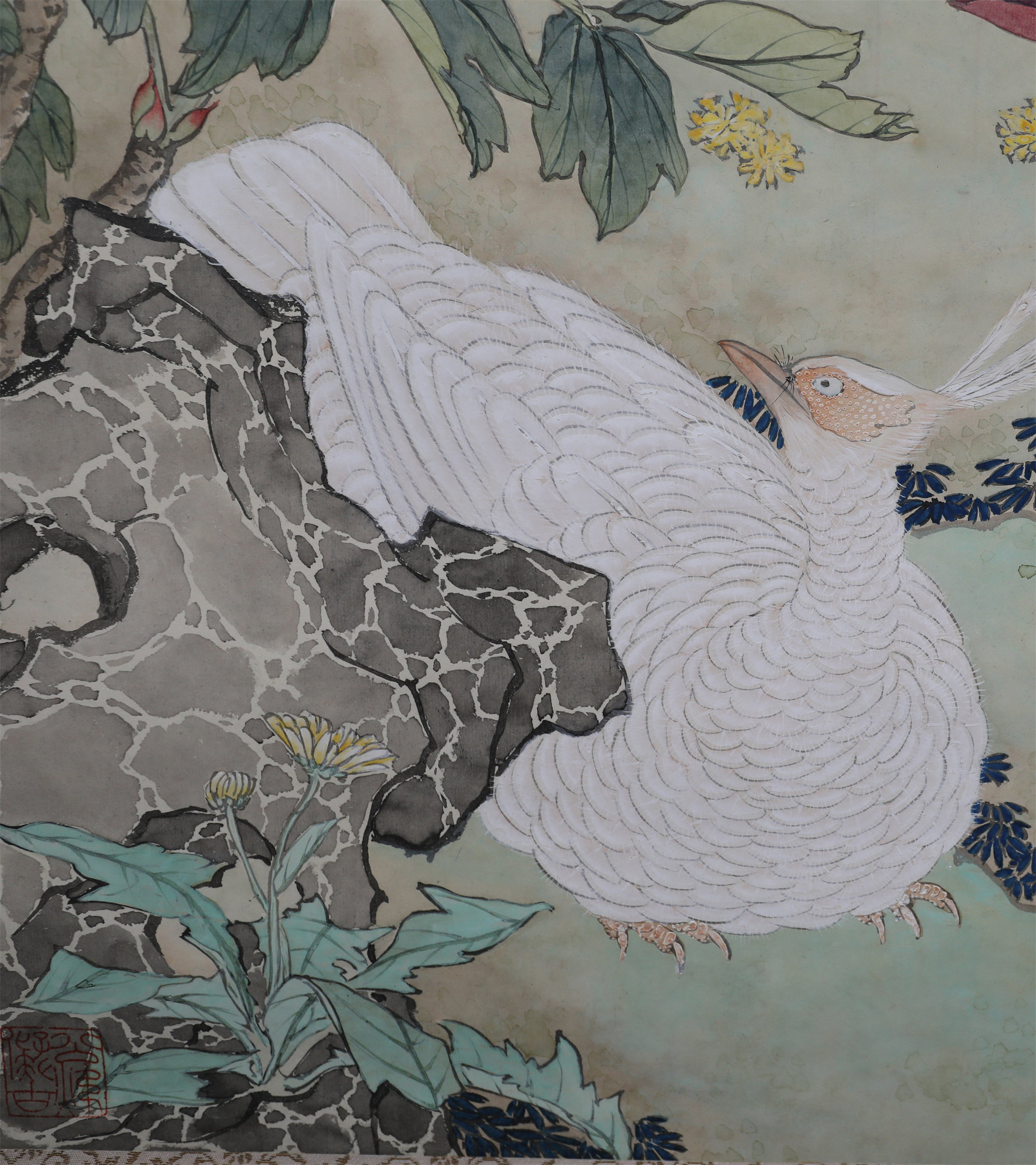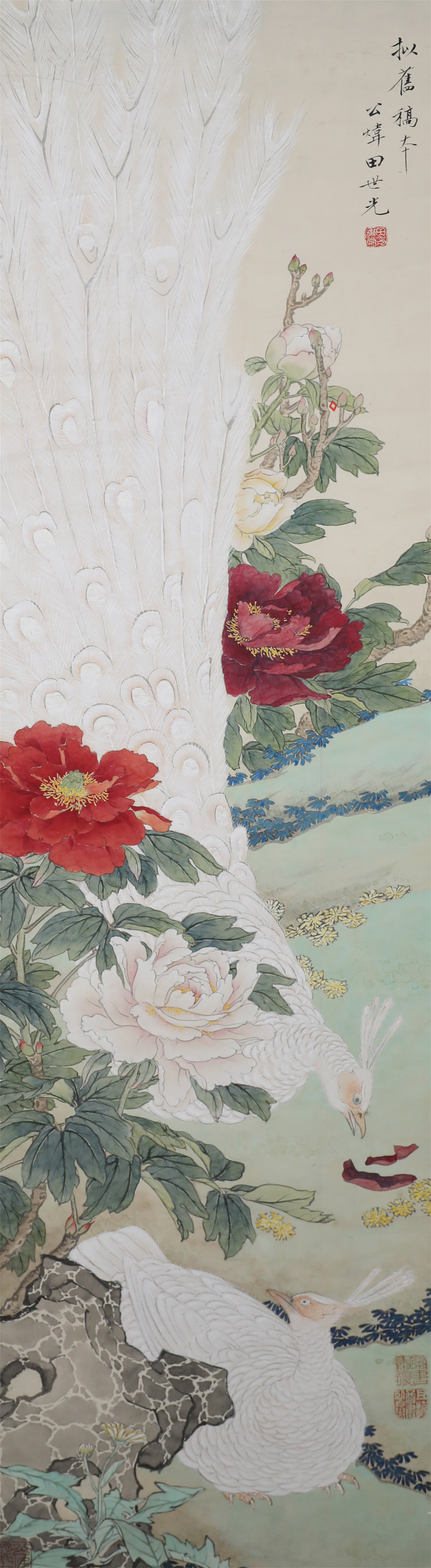 田世光(1916年10月—1999年7月)号公炜,祖籍山东乐陵,世居北京西海淀六郎庄。师承张大千、赵梦朱、吴镜汀、于非闇、齐白石诸先生。早年拜张大千门下,为大风堂弟子之一 。早年求学于京华美术学院,专攻国画花鸟,解放前在北平国立艺专任教,曾任中央美院教授。他长期从事花鸟、山水画创作,继承了宋元派双勾重彩工笔花鸟画的优良传统技法,并赋之予新的时代精神,为我国现代工笔花鸟画名家。田世光先生是中国美术家协会会员,北京工笔重彩画副会长,中国画研究院第一届院务委员。