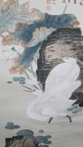 田世光(1916年10月—1999年7月)号公炜,祖籍山东乐陵,世居北京西海淀六郎庄。师承张大千、赵梦朱、吴镜汀、于非闇、齐白石诸先生。早年拜张大千门下,为大风堂弟子之一 。早年求学于京华美术学院,专攻国画花鸟,解放前在北平国立艺专任教,曾任中央美院教授。他长期从事花鸟、山水画创作,继承了宋元派双勾重彩工笔花鸟画的优良传统技法,并赋之予新的时代精神,为我国现代工笔花鸟画名家。田世光先生是中国美术家协会会员,北京工笔重彩画副会长,中国画研究院第一届院务委员。