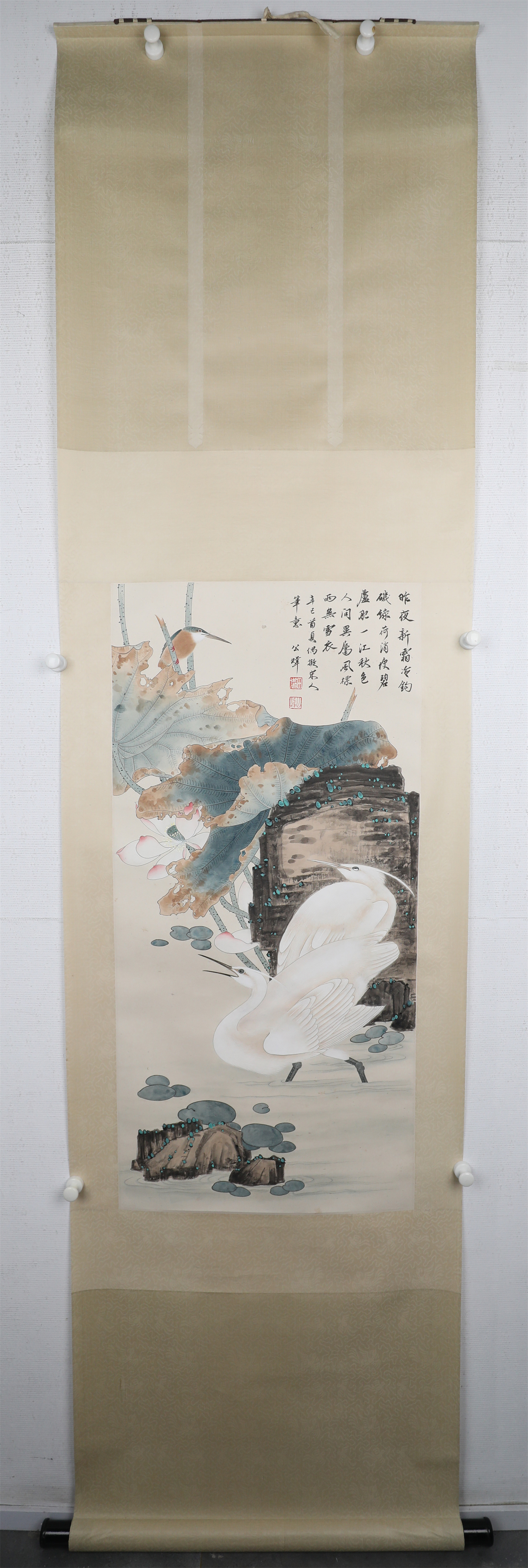荷花翠鸟