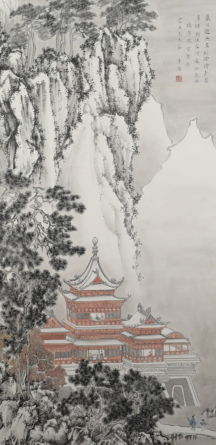 溥心畬[yú],满族,原名爱新觉罗·溥儒,初字仲衡,改字心畬,自号羲皇上人、西山逸士,北京人,著名书画家、收藏家。为清恭亲王奕訢之孙。曾留学德国,笃嗜诗文、书画,皆有成就。画工山水、兼擅人物、花卉及书法,与张大千有“南张北溥”之誉,又与吴湖帆并称“南吴北溥”。