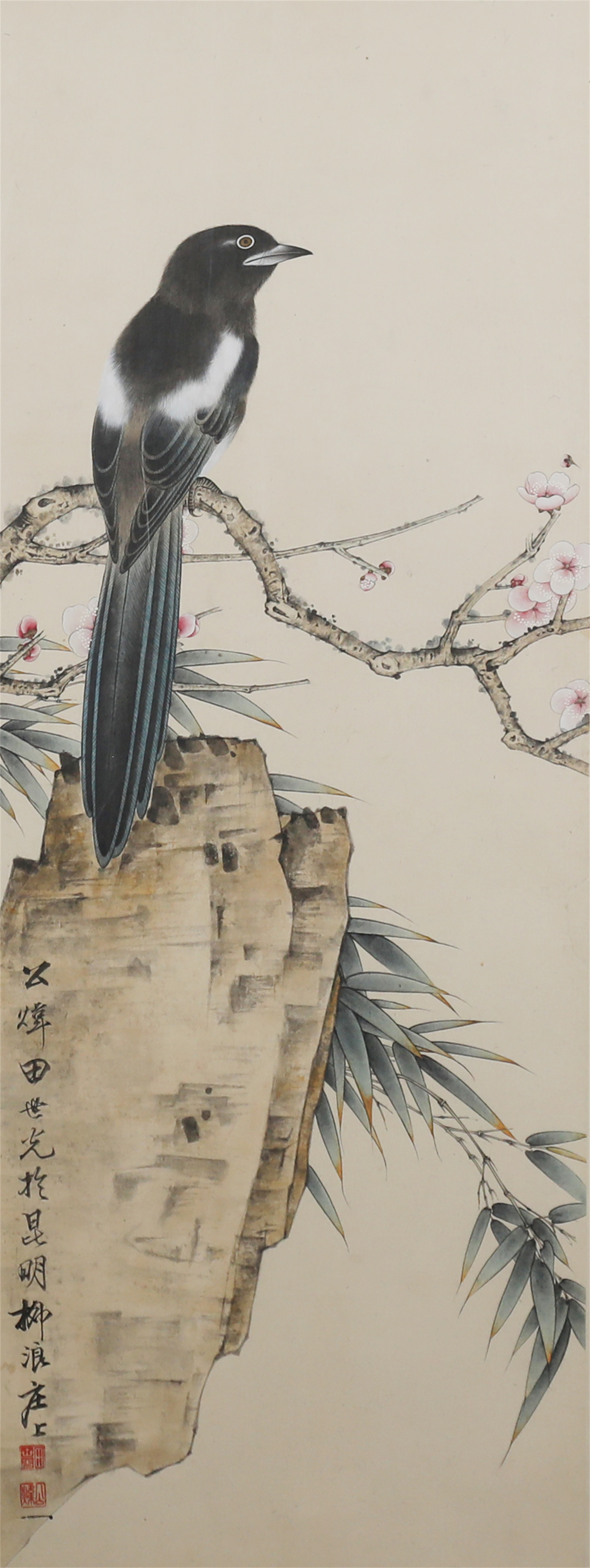 田世光(1916年10月—1999年7月)号公炜,祖籍山东乐陵,世居北京西海淀六郎庄。师承张大千、赵梦朱、吴镜汀、于非闇、齐白石诸先生。早年拜张大千门下,为大风堂弟子之一 。早年求学于京华美术学院,专攻国画花鸟,解放前在北平国立艺专任教,曾任中央美院教授。他长期从事花鸟、山水画创作,继承了宋元派双勾重彩工笔花鸟画的优良传统技法,并赋之予新的时代精神,为我国现代工笔花鸟画名家。田世光先生是中国美术家协会会员,北京工笔重彩画副会长,中国画研究院第一届院务委员。