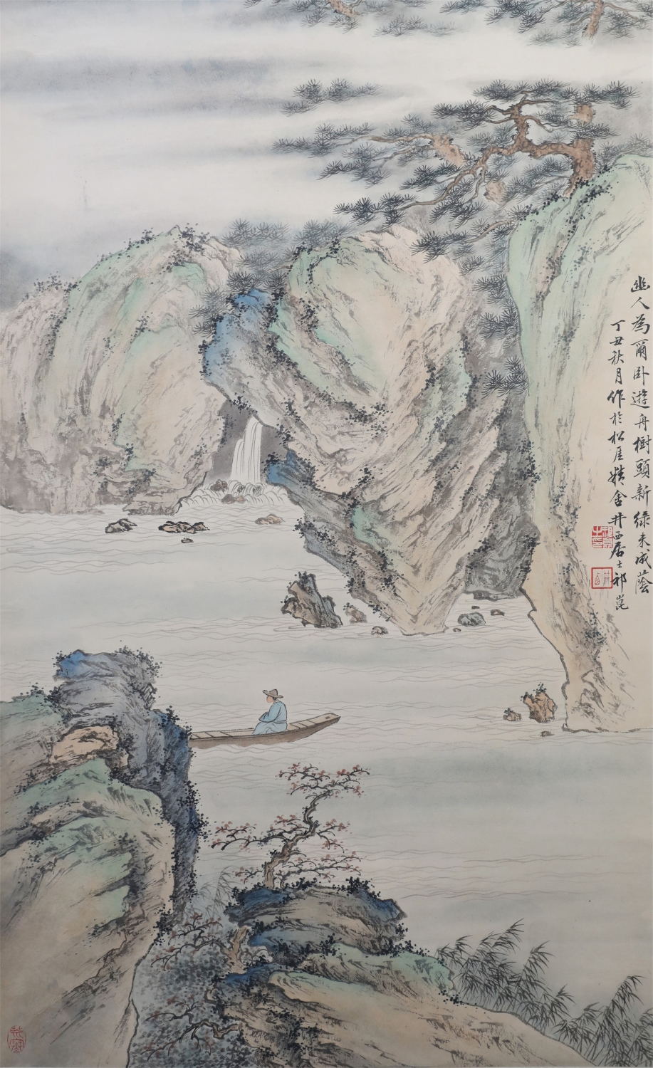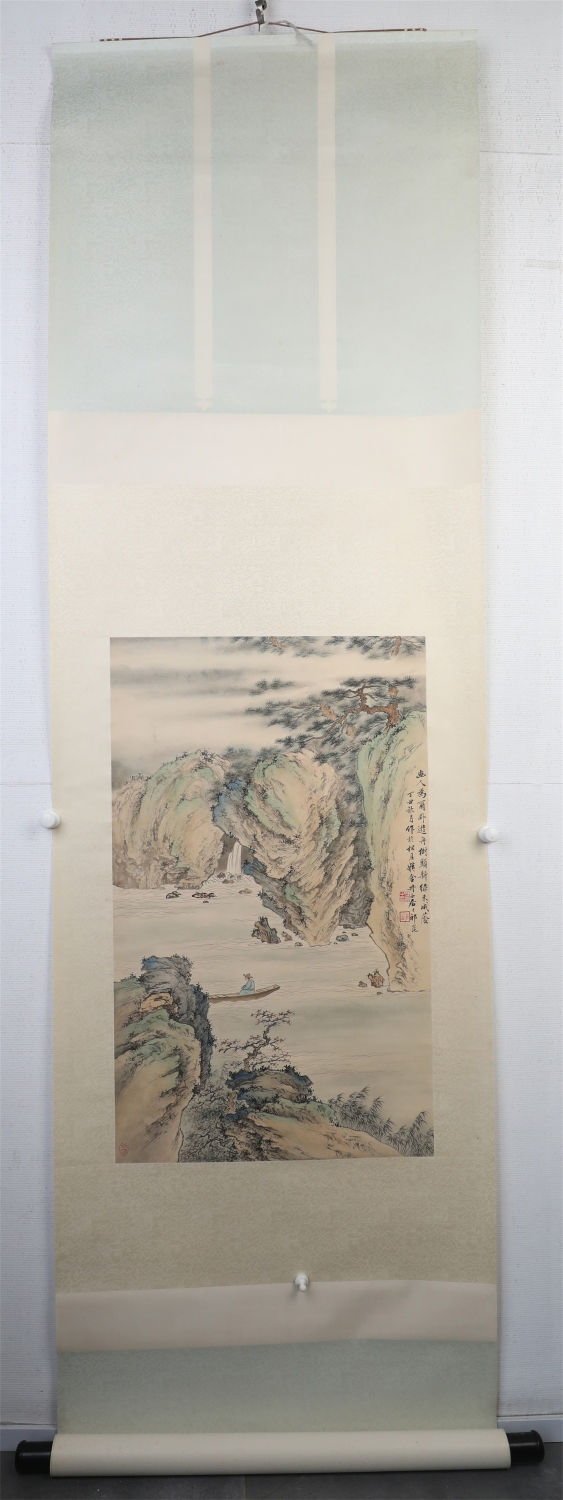 祁井西(又名祁昆1901—1944)字景西,号井西居士,斋号曰松崖精舍。北京人。初以籹卖颜色得识京城名家,刻励自学。因受民初追踪宋元之风的影响,专意摹古临古,尚北宗山水,所画理法精严,笔墨精致,枯润合度。在20-40年代的北京有一定影响。工细山水得明人遗意,又精篆刻。性喜犬,室内床上下所蓄犬无思十余头,可谓奇癖,所作山水,规模明人,而近于王翚。作风精细清润,构图全出之正统派民国初年北京画坛以王翚为“神圣不可侵犯”,祁氏亦受影响,在学王诸诸家中堪称翘楚。但用笔略嫌拘谨板实,工稳有余,创意不足。弟子有郭传璋、徐鼎正、梁树年等。