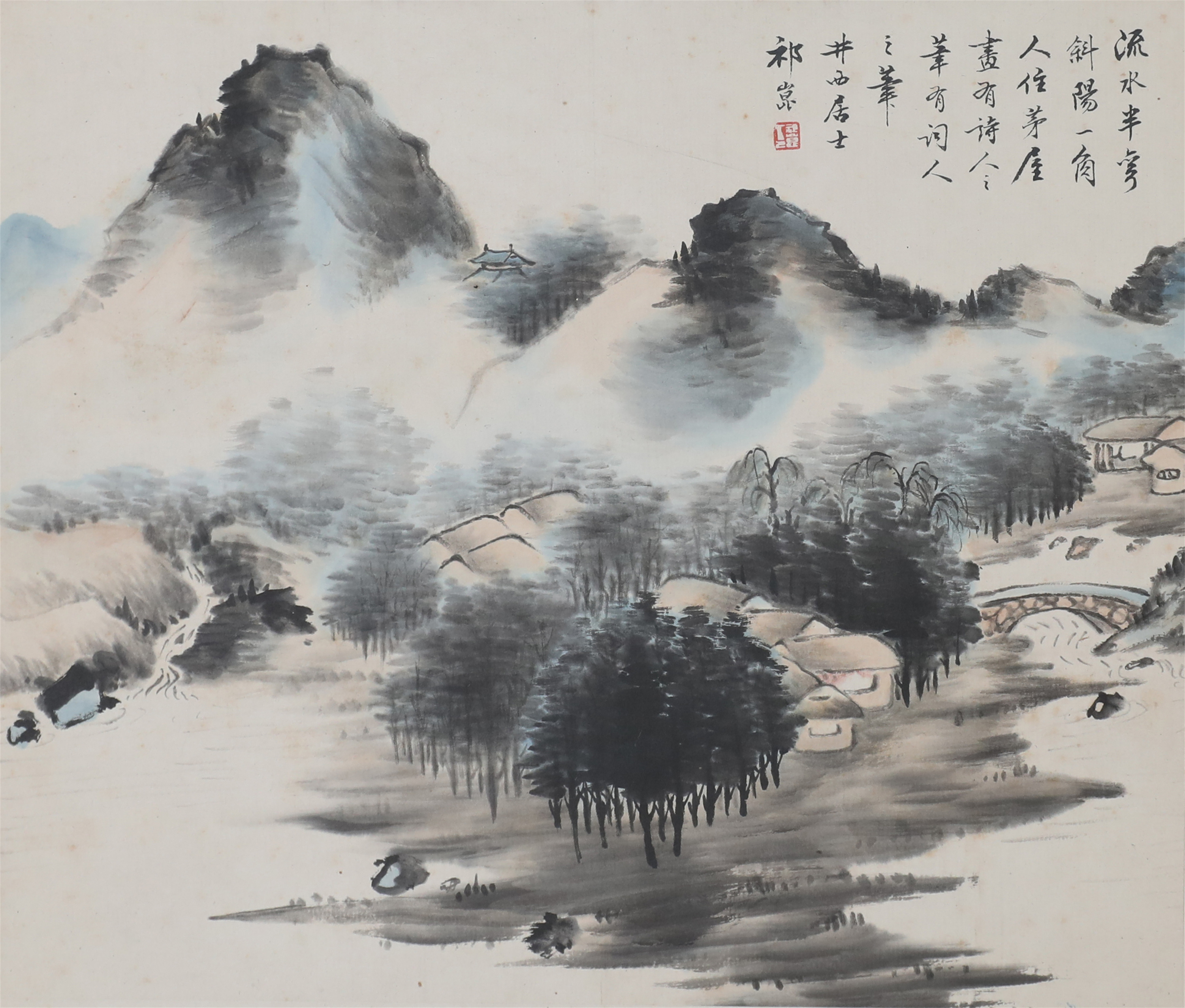 祁井西(又名祁昆1901—1944)字景西,号井西居士,斋号曰松崖精舍。北京人。初以籹卖颜色得识京城名家,刻励自学。因受民初追踪宋元之风的影响,专意摹古临古,尚北宗山水,所画理法精严,笔墨精致,枯润合度。在20-40年代的北京有一定影响。工细山水得明人遗意,又精篆刻。性喜犬,室内床上下所蓄犬无思十余头,可谓奇癖,所作山水,规模明人,而近于王翚。作风精细清润,构图全出之正统派民国初年北京画坛以王翚为“神圣不可侵犯”,祁氏亦受影响,在学王诸诸家中堪称翘楚。但用笔略嫌拘谨板实,工稳有余,创意不足。弟子有郭传璋、徐鼎正、梁树年等。