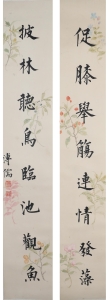 编号:10227 作者:P溥儒 名称:楷书七言联 规格:21*93cm*2 形式:纸本镜心 备注: