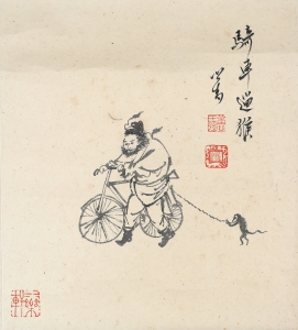 编号:10614 作者:P溥儒 名称:骑车遛猴 规格:27*24cm 形式:纸本镜心 备注: