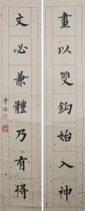 编号:9827 作者:P溥儒 名称:楷书对联 规格:25*125cm*2 形式:纸本镜心 备注: